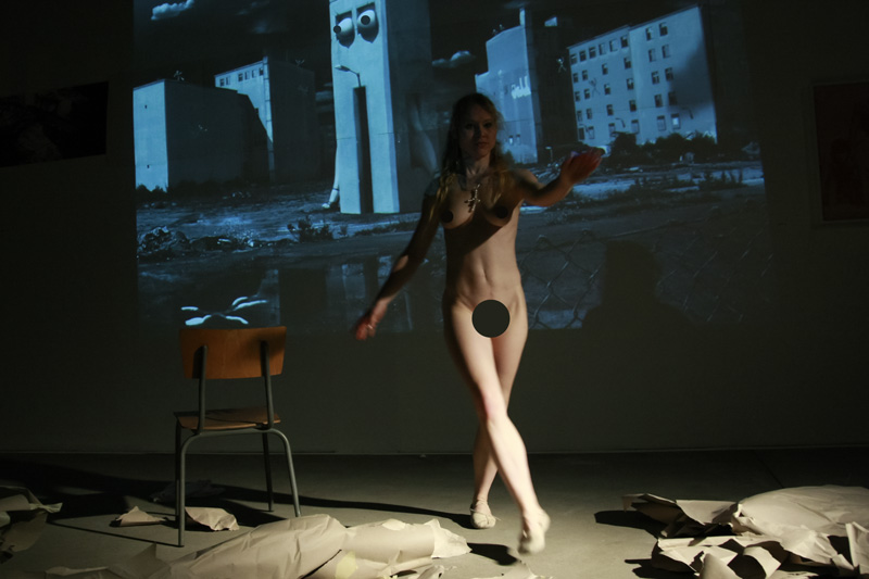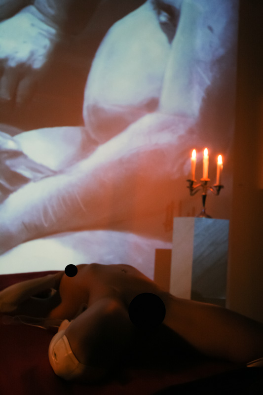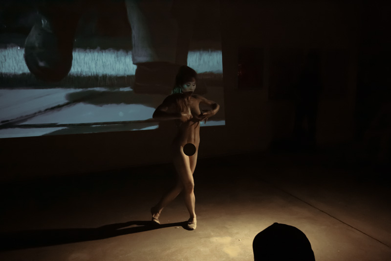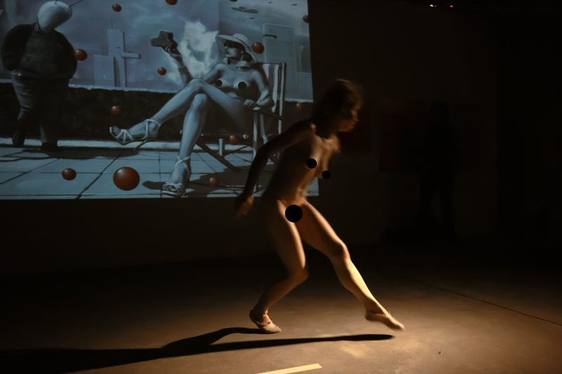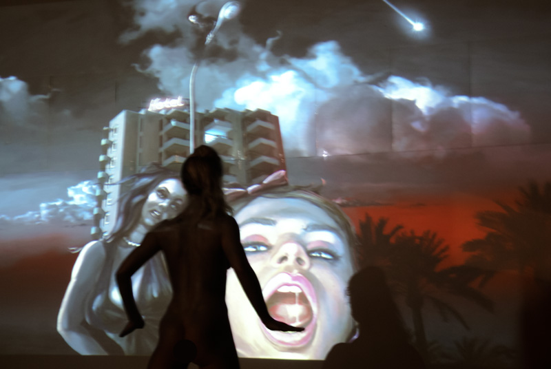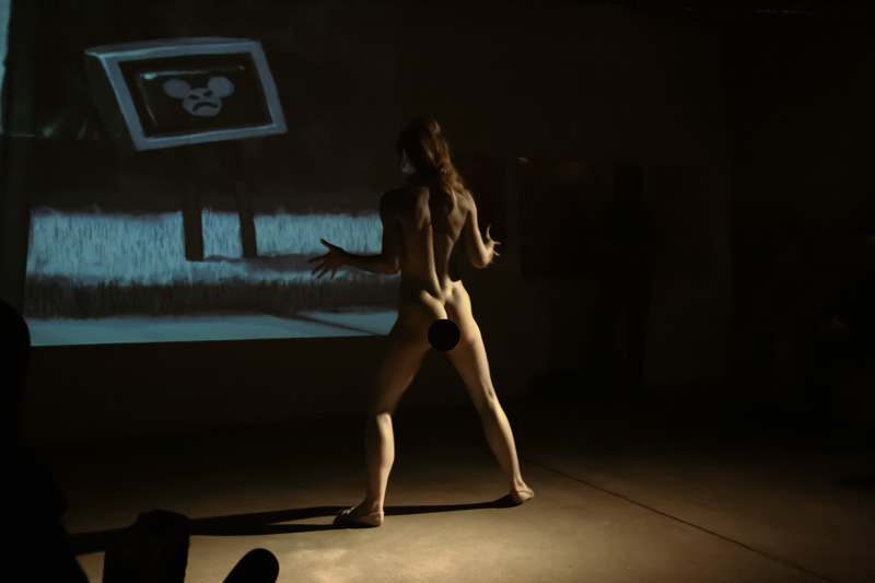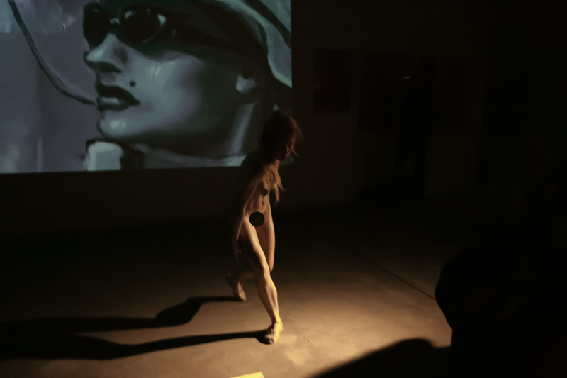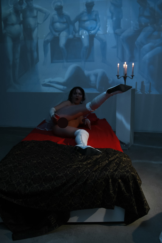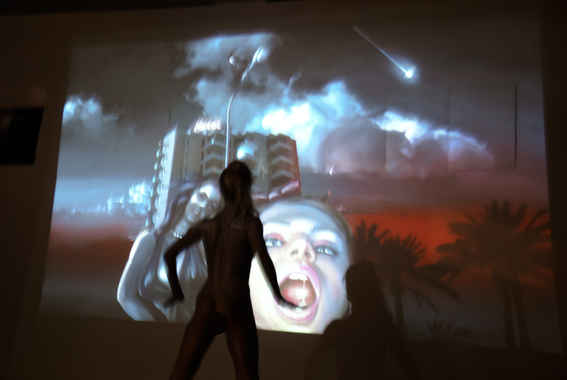 Vernissage von Smorlows Ausstellung »Fuck'n Dreams« mit erotisch-pornografische Show zu Projektionen und Live-Musik in der Galerie Tristesse Deluxe, Berlin-Mitte