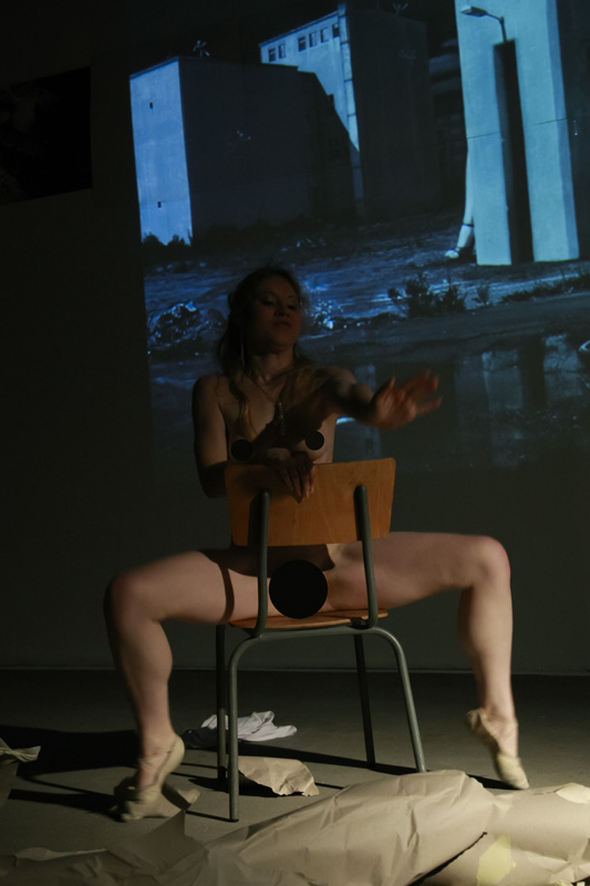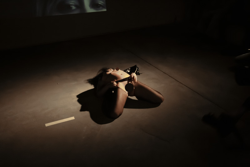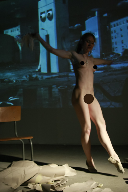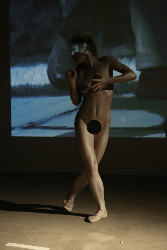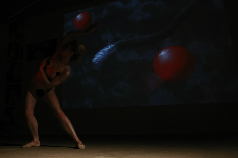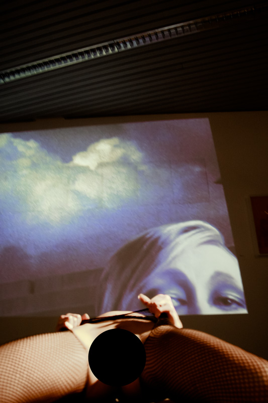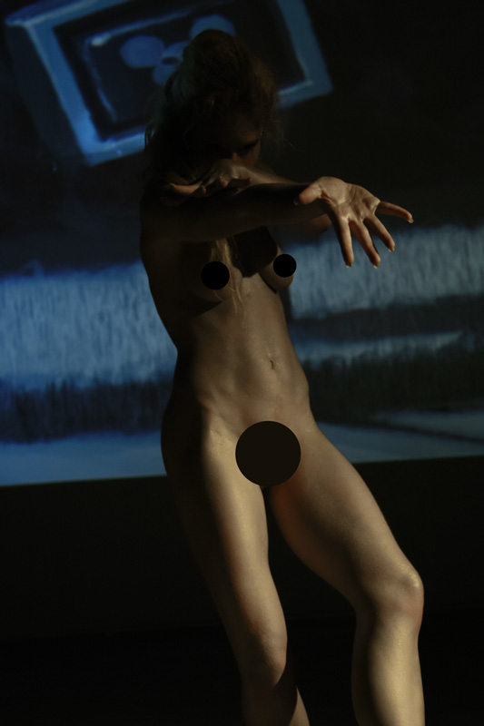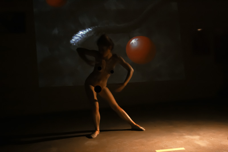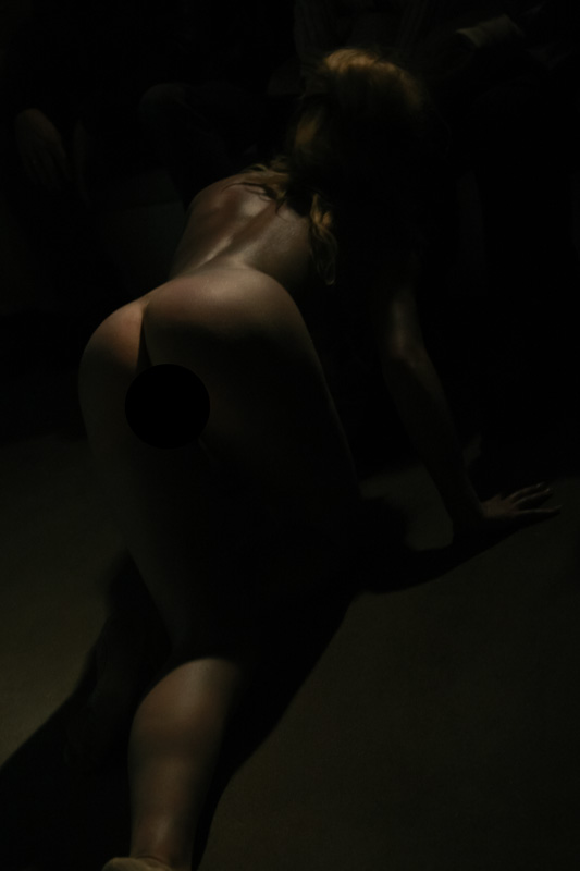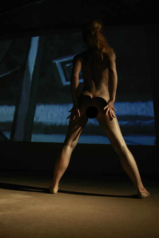 Schon geil! Das Zusammenspiel von Smorlows projizierten Bildern, Robert Meyers live performte elektronischen Klängen und die erotischen Darbietungen von Tänzerin Salimé und Porn-Actrice Maria Mia, erzeugt eine sehr besondere Wirkung! Das Publikum ist offensichtlich angetan.